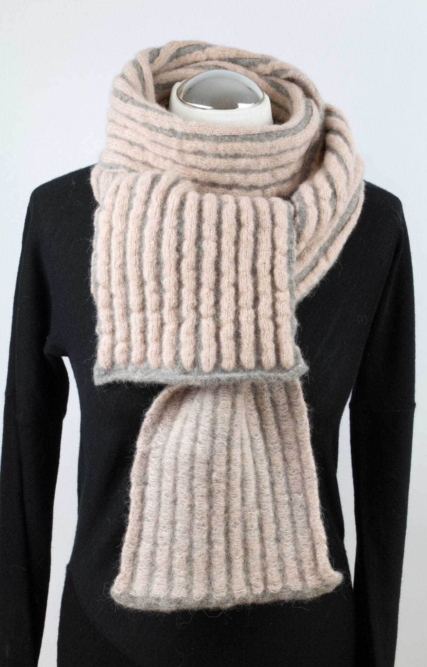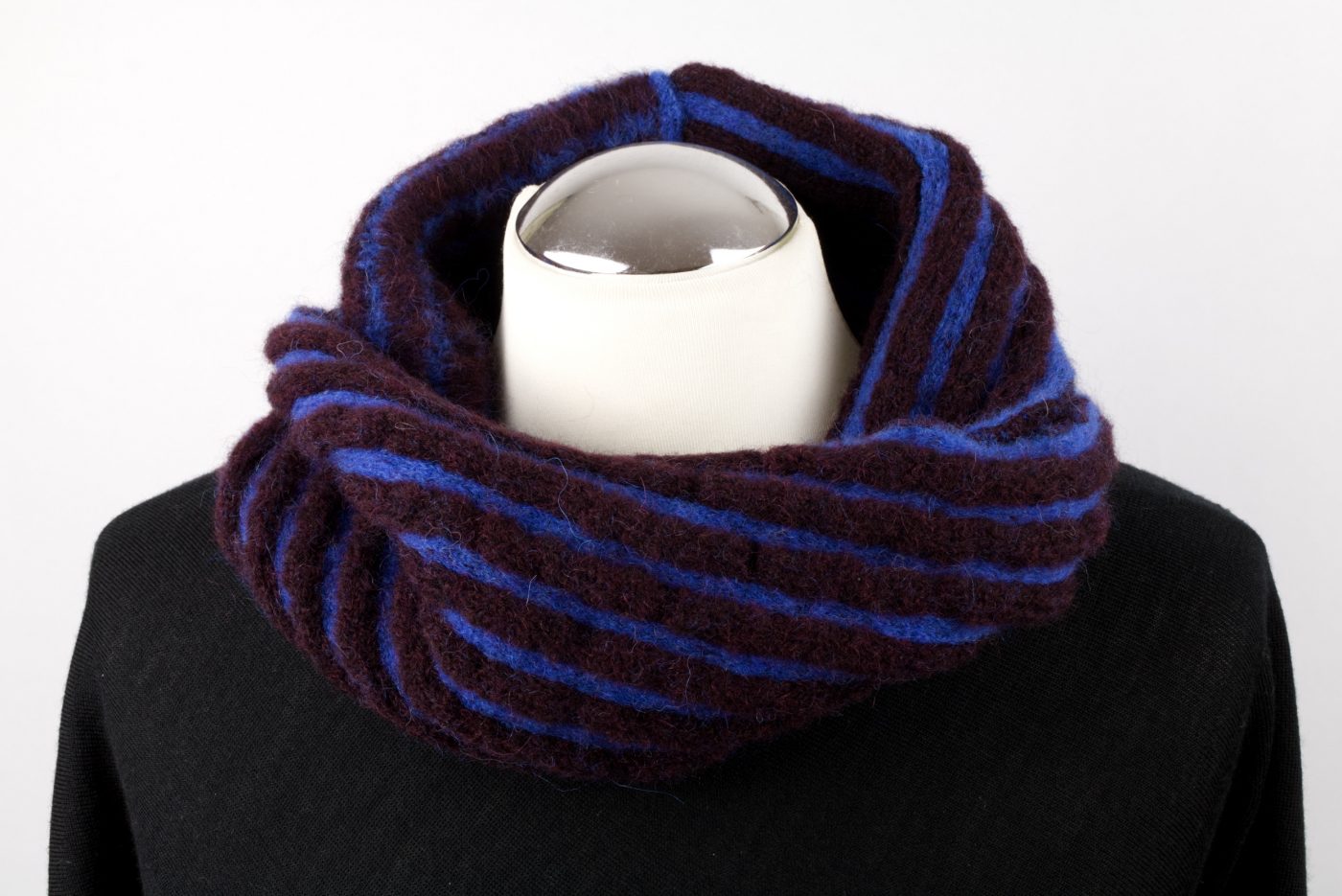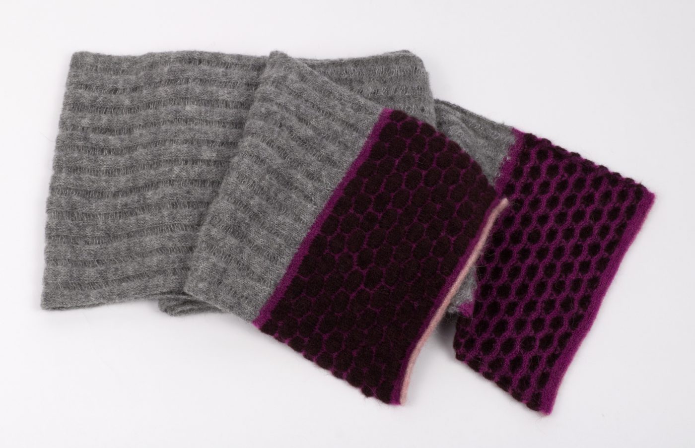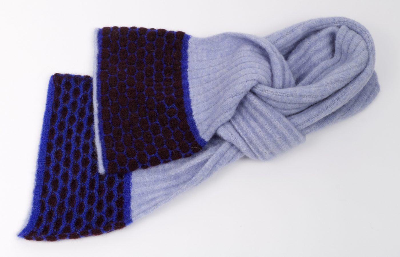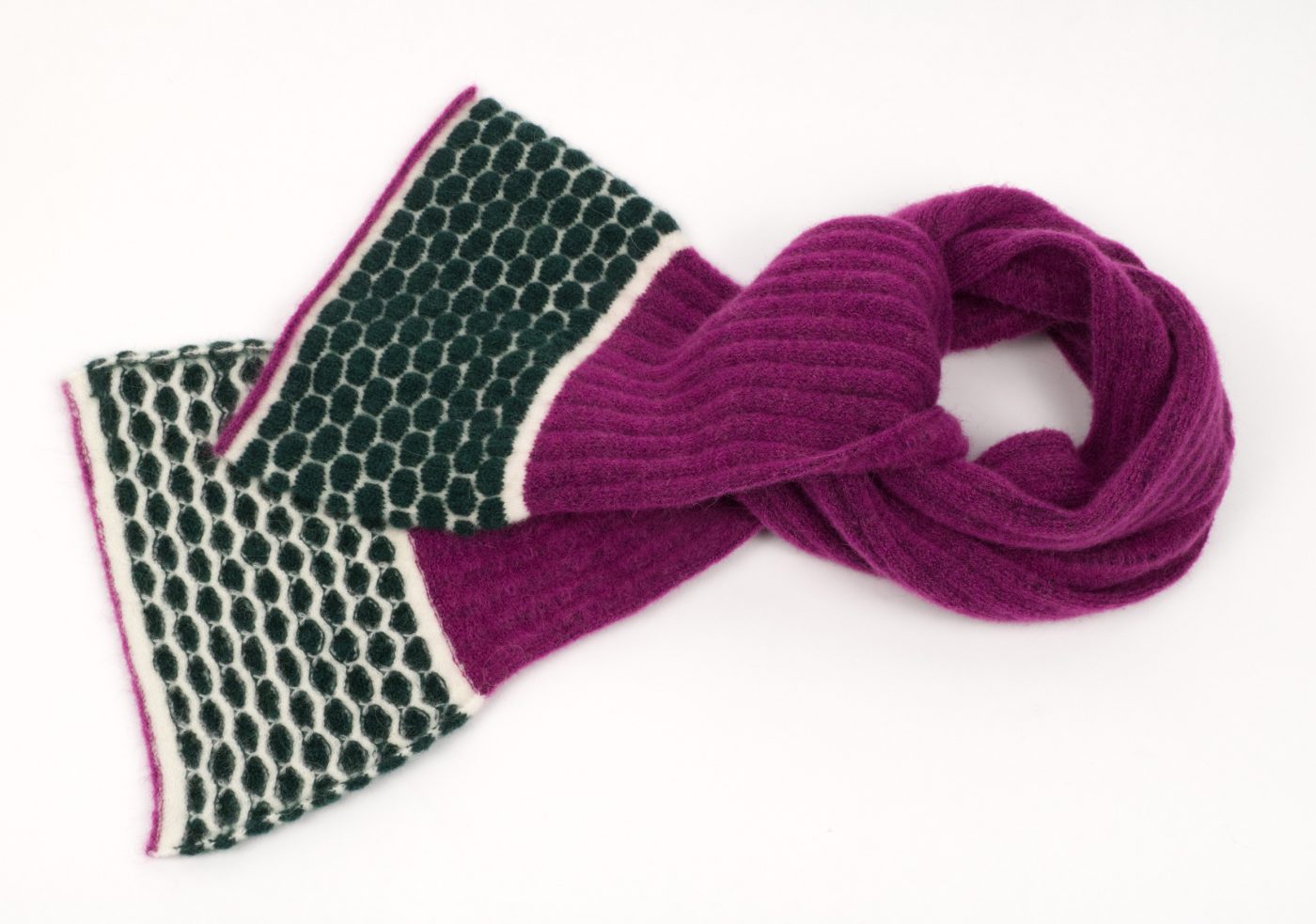 TextilUnter ihrem Label neverfarfromcolour entwirft und fertigt Heike Schumann textile Strick-Unikate, die durch ungewöhnliche Farbkombinationen und skulpturale Tiefe bestechen. Dafür nutzt sie die unterschiedlichen physikalischen Eigenschaften verschiedener Garne, um Reliefs zu formen, die aus der Fläche herauswachsen. Auf manuell betriebenen Strickmaschinen entstehen so durch den gezielten Einsatz spezieller Techniken dreidimensionale Strukturen im Grenzbereich zwischen Mode und angewandter Kunst.